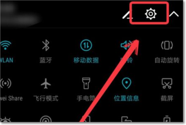 1、将手机上方的菜单栏下拉。点击”设置“图标。