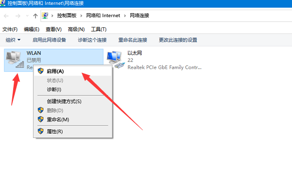 3、此时可以看到电脑的无线功能,点击右键选择启用。