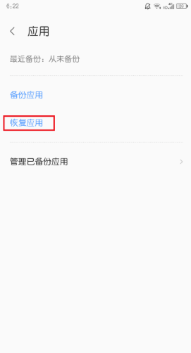 备份功能必须开启才可以找到恢复应用功能,否则无法恢复。