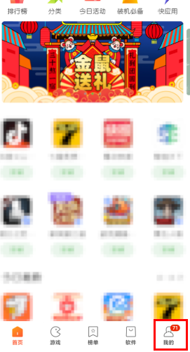 2、进入应用中心后,找到右下角的“我的”,点击进入,如图所示。
