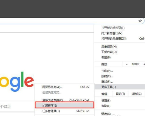 1、打开谷歌浏览器的扩展程序界面,找到设置-更过工具-扩展程序即可。