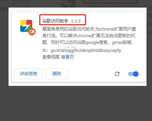 2、准备好已经安装的谷歌访问助手。这是一个插件。