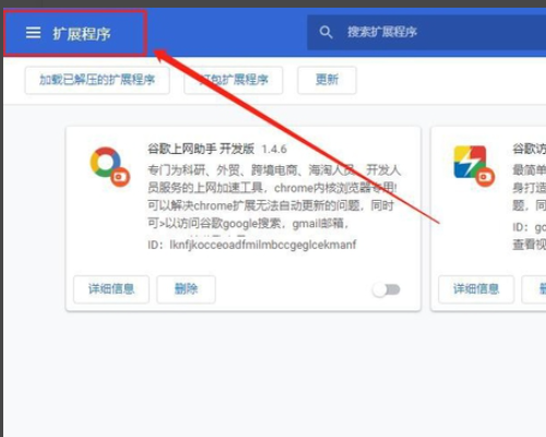 3、在扩展程序页面的右上角,点击扩展程序,这个是谷歌应用商店的入口。