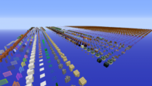 调试模式是一种世界类型。在创建世界时按住shift点击地图类型,即可。在单个的世界中包含所有状态和数据值的一般方块,在y=70的高度以网格的方式排列,并在y=60的高度有一层屏障。