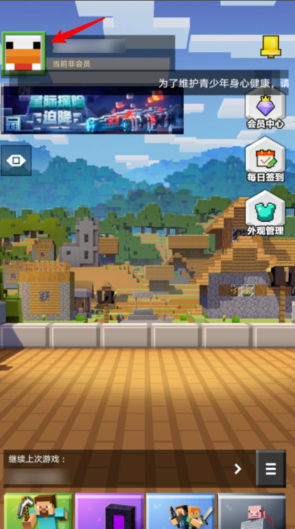 1、首先点击进入到我的世界游戏,点击左上角的角色头像图标。