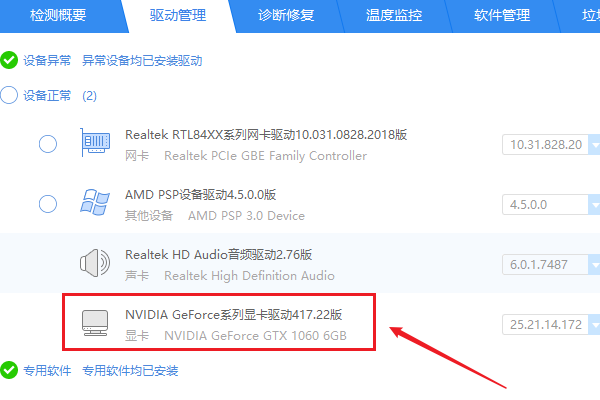 以驱动精灵为例,使用驱动精灵安装显卡驱动步骤如下所示: