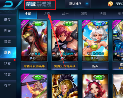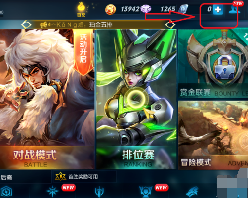 2、进入主页面之后,我们选择右上角的点券位置的加号。