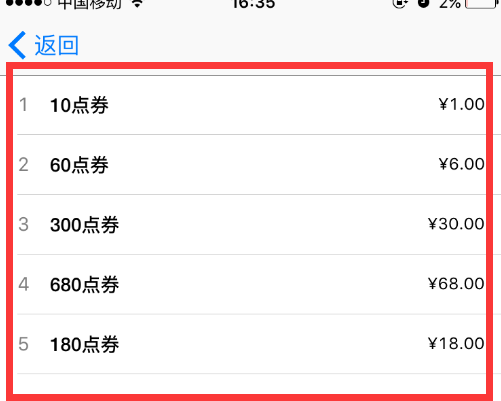 2、选择后我们就可以看到各种充值的选项。当然这里要比游戏里面的少一些。