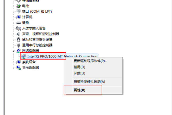 3、展开这网卡右键它选择属性。