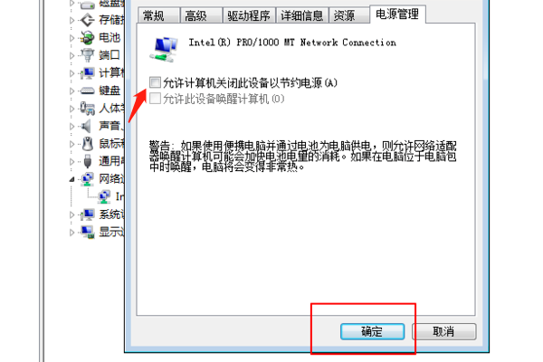 5、把允许计算机关闭此设备以节约电能,前面的勾给取消了的,接着点击确定。