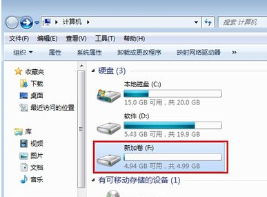 完成创建,打开“计算机”,可以看到“虚拟磁盘" 新加卷:F。
