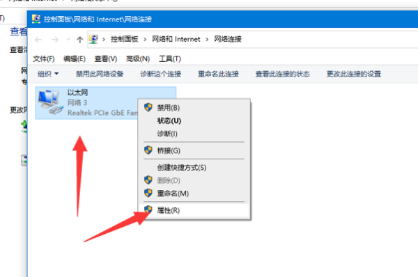 4、再选中当前的网络连接,点击右键选择属性按钮。