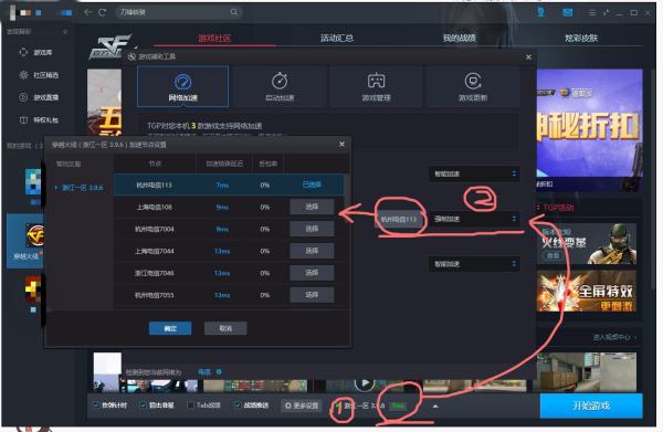 有多个可能性,一,如果你使用公网或局域网,那服务器可能会对IP和流量进行限制,解决方法就是换网使用或者挂VPN,二,可能是DNS问题,可以检查DNS配置,一般软件里面360就有工具,三,CF游戏数据传输如果距离过长游戏会自动寻找中间节点作为数据的缓冲和加速,所以可以下个TGP,具体操作如图。