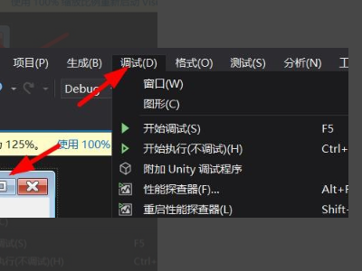 5、此时我们就能在这里点击调试的菜单命令,点击后即可对命令的使用。