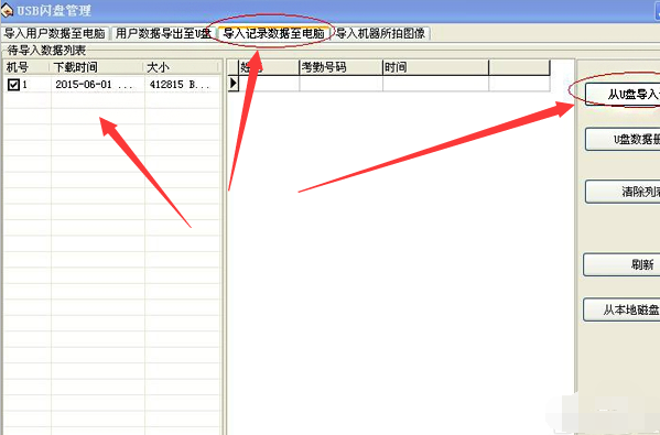 11、页面跳转以后,点击导入记录数据到电脑,选择U盘里面的文件点击从U盘导入记录。