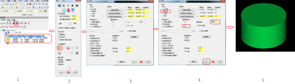 可以通过下图中的几个步骤达到mastercam编程设置中怎么将工件材料设置为圆形材料的目的,请留意图中红色框的选项: