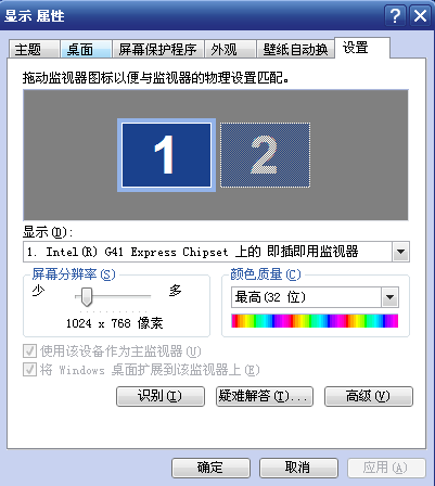 你好 1、如果在调整分辨率时,发现分辨率调整不了,首先要查看屏幕的分辨率模式是不是支持。查看方法,先在桌面空白处右键,选择菜单中的“屏幕分辨率”。 2、进入更改显示器外观界面后,点击右侧的“高级设置”,在通用即插即用监视器窗口,选择“适配器”,在其下,点击“列出所有模式”按钮,看一看所有模式列表中,是否支持你设置的分辨率,如果没有,就表示不支持。 3、还有一种不支持,即采用了外接显示器,外接显示器采用了复制模式,因为在复制模式下,分辨率只能设置为最大分辨率,是外接设备与内置显示器最大分辨率,例如,电脑内置的分辨率为1366X768,而外置的为1280X768,那么,在复制模式下,最大分辨率只能笔记本分辨率设置失败怎么回事