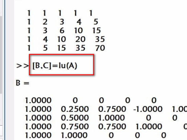 如何使用matlab命令进行LU分解
