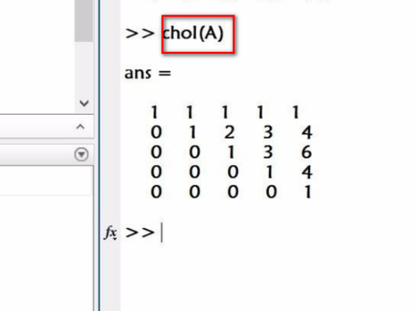 3、使用函数chol(A)对矩阵A进行Cholesky分解。