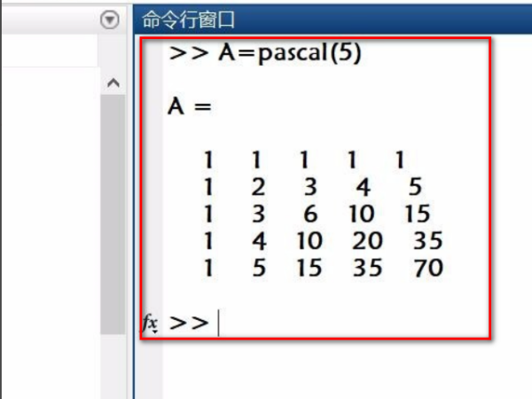 2、使用函数pascal(5)创建5x5的矩阵A。