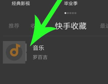 3、打开快手收藏界面,然后点击音乐“名字”。