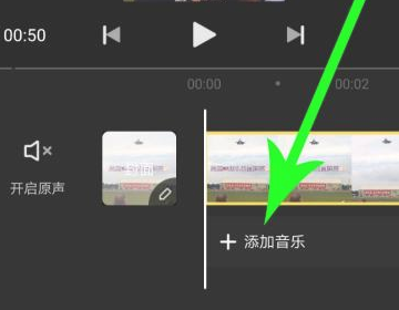 1、首先在快影上打开剪辑界面,然后点击“+添加音乐”。