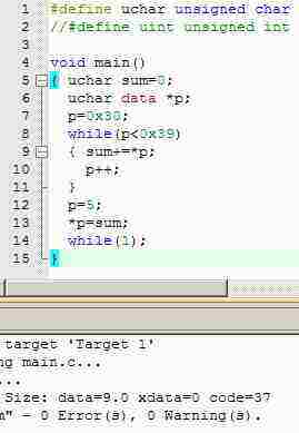 MAXDAT: MOV R0,#30H MOV R2,#10 MOV B,#0 LOOP: MOV A,@R0 CJNE A,B,LP1 LP1: JC LP2 MOV B,A LP2: INC R0 DJNZ R2,LOOP RET汇编语言从内部30h开始,存9个数据1到9,求其和并存到r5中