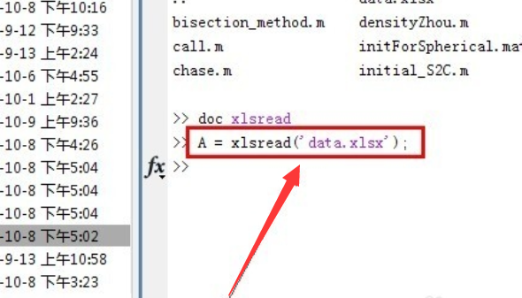 对于上图所示的数据文件,只需要使用下面的命令进行读取即可:A = xlsread('data.xlsx')