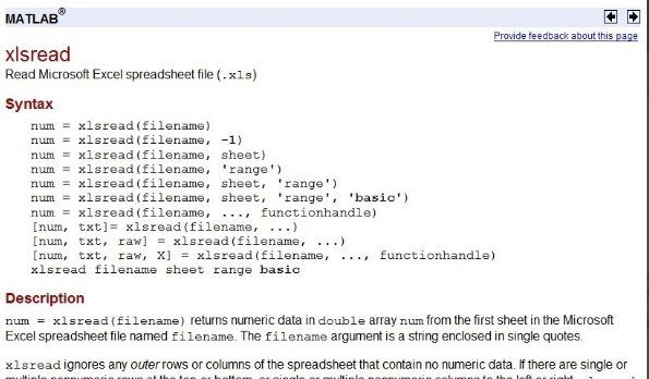 如果数据文件保存在excel的某个sheet中,使用方式为:A = xlsread('data.xlsx','Sheet1')