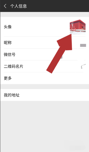 3、在个人信息页面中,点击头像一栏后方我们的微信头像图片,进入头像页面。