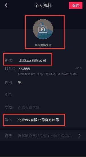 3,在“编辑资料”页面,修改您的帐号头像、昵称、签名,以符合您的企业认证信息。
