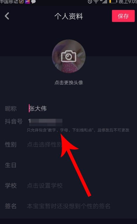 2、然后点击头像即可打开昵称编辑页面,即可修改。