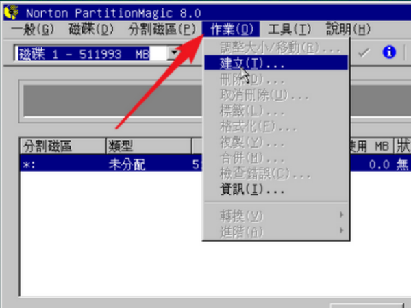 4、接下来需要在作业下选择建立分区,如下图所示。