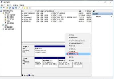 1、同时按下win键+X键,选择 【磁盘管理】,右击D盘,选择“删除卷”