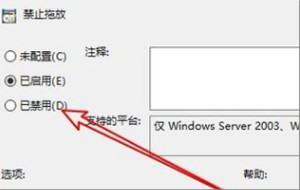 5、随后,完成上述步骤后,在右侧窗口中,找到“禁止拖放”选项,如下图所示,然后进入下一步。