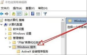 10的“本地组策略编辑器”窗口,在其中找到选项“计算机配置/管理模板/Windows组件”,如下图所示,然后进入下一步。