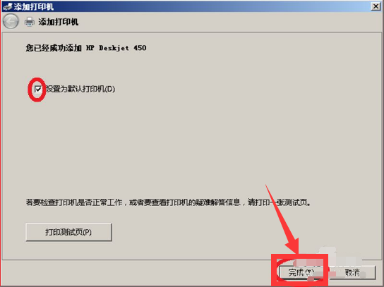 7、勾选“设为默认打印机”,然后点击“完成”即可。