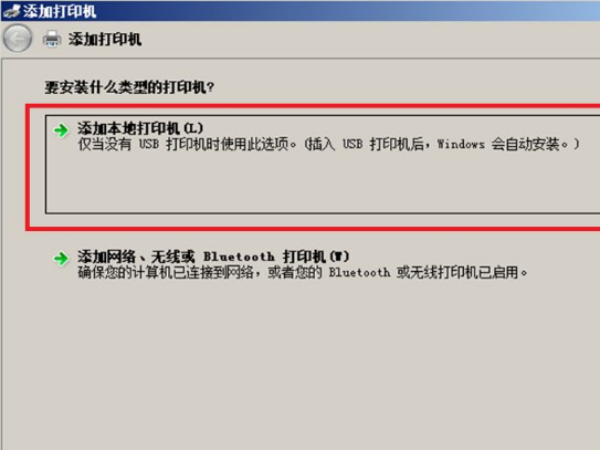 6、选择“添加本地打印机”。