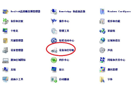 4、在控制面板中,点击“设备和打印机”。