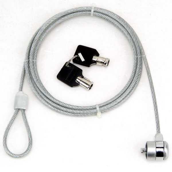右边锁孔是配合下图这种防盗锁具使用的,可以将电脑锁定在某个位置方式别人将其搬走。