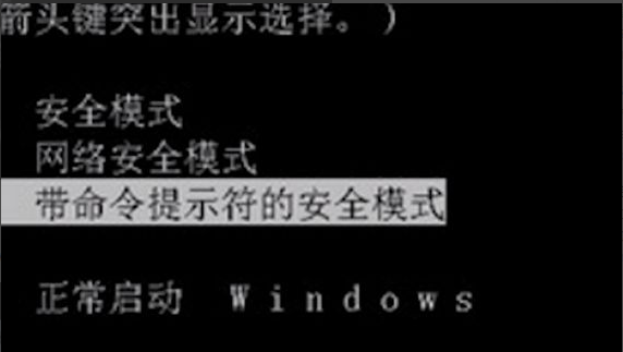 3、如果选择“最近一次正确配置”不能进入系统的话,再次开机。然后一直按“F8”,选择“带命令提示符的安全模式”。如图所示: