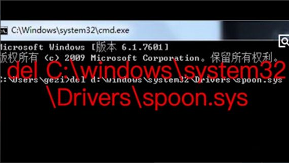 4、输入这个命令delC:\windows\system32\Drivers\spoon.sys就可以了。如图所示: