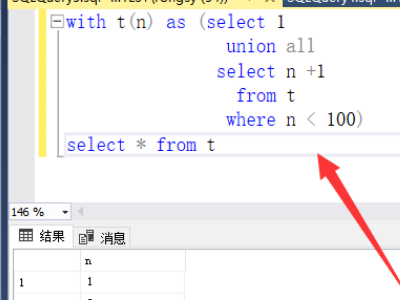 2、然后在SQL编辑界面利用row_number来输出1到100的数字,如下图所示。