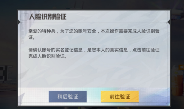 和平精英出现人脸识别,需要亲自完成身份验证,才能正常玩游戏。不能跳过此步骤。