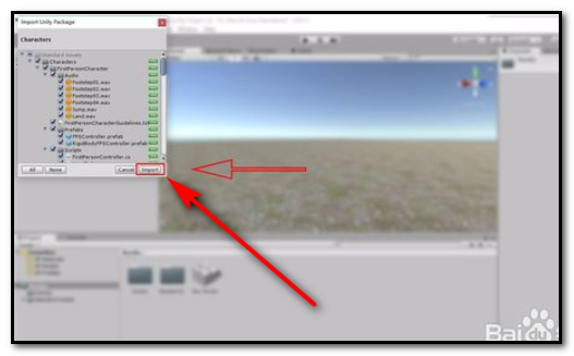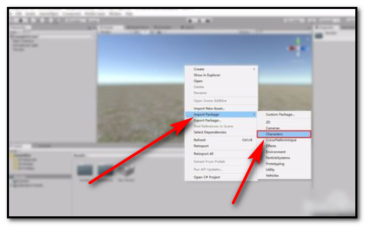 2、在弹出的选项框中找到ImportPackage——Characters,即导入人物角色包。