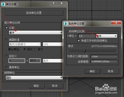 然后将显示单位和系统单位比例都设置成厘米,然后确定