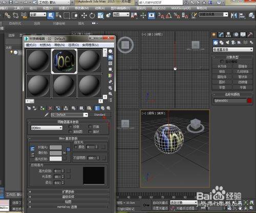 再给球一个材质,操作是按M键出现材质编辑器,漫反射选择位图,选择需要的纹理,然后点击在视口中显示。