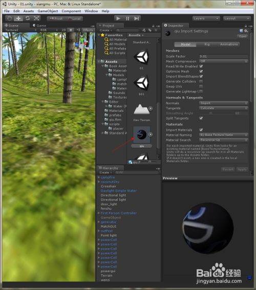 然后再unity3d中直接就有这个模型了