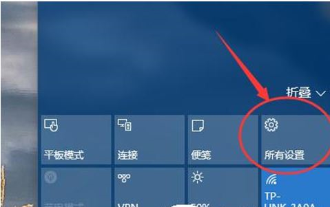 1、点击右下角任务栏的图标,在弹出的页面中,点击所有设置选项