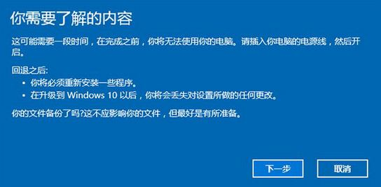6, 确认该消息不会影响到你的使用后,点击“下一步”继续。